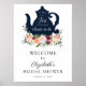 Bienvenidos a la despedida de soltera con esta hermosa cartelera que presenta una tetera azul marino con flores color Burdeos y rosadas con follaje. Agregue el nombre de la homenajeada, la fecha de la celebración y el texto de bienvenida personalizado utilizando los campos proporcionados.