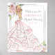 La señal de bienvenida para despedida de soltera presenta a la novia con vestido de novia con brillo, destellos y centelleos. ¡Múltiples estilos de peinado y tonos de piel para elegir!