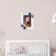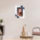 Elegante señal de bienvenida para celebración de la vida/funeral con foto floral azul y rosa, con rosas azules y rosadas de acuarela y flores de bebé que decoran una foto dentro de un marco plateado. Artículos coincidentes disponibles.