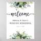 Bienvenidos a los invitados a su ensayo de boda con este hermoso cartel, con hojas de eucalipto y vegetación. Agregue el nombre del invitado de honor, la fecha del evento y el texto de bienvenida personalizado utilizando los campos proporcionados.