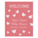 Señal de bienvenida poster para el fiesta de la ducha de bebé primavera. Diseño elegante con mariposas y tipografía elegante. Personaliza con el nombre de mamá para ser.