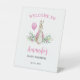 Marca de bienvenida color agua Peter Rabbit Pink Baby Shower. Elementos coincidentes disponibles.