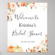 Señal de boda con brillo dorado floral de otoño