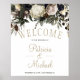 Señal de boda de bienvenida elegante de peonías bl