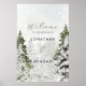 Un hermoso cartel de bienvenida de diseño invernal/vacacional/navidad para su boda, ducha, fiesta, etc. con pinos cubiertos de nieve y copos de nieve. ¡Ideal para sus celebraciones y fiestas de temporada! Artículos coincidentes disponibles en nuestra tienda.
