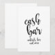 Una elegante señal de boda de vanguardia, presenta el texto "Barra de efectivo cócteles, cerveza y vino" en una fuente de letra extravagante, la textura de la brocha añade un sentimiento espontáneo y juguetón. El color de fondo se puede personalizar según tus necesidades y preferencias, por favor contáctame si tienes alguna solicitud especial.