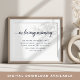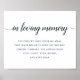 Un letrero simple y elegante es perfecto para colocar en la mesa conmemorativa de su recepción de boda o exhibición en honor a sus seres queridos que han fallecido. Personalice el encabezado y el texto del cuerpo (mostrado con "En amorosa memoria" y un breve poema) en rica caligrafía azul marino y letra de bloque clásica.