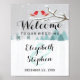 Elegante cartel de señal de boda de escena de nieve de invierno con pájaro cardenal rojo y reno. Un diseño perfecto para tu gran día. ¡Todo el estilo de texto, colores y tamaños pueden ser modificados para ajustarse a tus necesidades!
