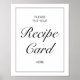 "Por favor, ponga su tarjeta de receta aquí" señal de boda. Diseño negro blanco minimalista moderno elegante.