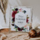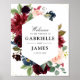 Un diseño floral con un marco geométrico moderno y flores de color azul marino y azul burdeos. El texto y los colores de este poster de signos boda se pueden editar.