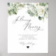 En Memoria Floral Blanco Verde Botánico Póster conmemorativo de Boda Señal.
