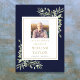 Una elegante celebración de la vida, señal de servicio conmemorativo funerario que presenta follaje botánico de acuarela sobre un fondo azul marino. Diseñado por Thisisnotme©