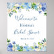 Póster de Señal de Chorro Nupcial Chic Floral Hortensia Azul.