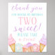 Invite a los invitados a disfrutar de algo dulce con este letrero de "Toma un regalo" para el segundo cumpleaños "Two Sweet". Diseñado con un tema divertido inspirado en postres que incluye donas, dulces y sprinkles, este letrero es perfecto para guiar a los invitados hacia tus favores de fiesta, mesa de postres o estación de regalos.