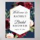 Póster de Despedida de Soltera Floral Rosa Azul Rojo Borgoña.
