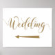 Señal del boda de oro con flecha izquierda para apuntar a los invitados en la dirección correcta