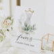 Este diseño elegante presenta un suave ramo de eucalipto pintado a la acuarela, verde y adornos dorados que envuelven un vestido pintado. Coloque en la mesa de favores de su ducha de novia. ¡Vea toda la colección para obtener más artículos coincidentes!