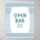 señal de mesa de barra abierta de fiesta de toga elegante con columnas de templo elegante y patrón de meandro griego en azul. Perfecto para sus bodas temáticas de la antigua Grecia o la antigua Roma, compromisos, fiestas de graduación, aniversarios, guardar las fechas, despedidas de soltera y cumpleaños.