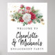 Hermosas rosas rojas y blancas están anidadas en acebo verde y bayas rojas. Los adornos navideños redondos rojos y blancos añaden un toque festivo. El confeti salpicado de oro añade un toque de lujo. Esta señal de compromiso es parte de una colección de compromiso que te permite crear invitaciones únicas y decoraciones para fiestas.