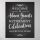 Señal de fiesta de retiro de bienvenida. Firma del boda de Chalkboard Cree su propio signo para su fiesta de retiro