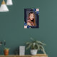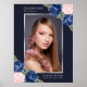 Elegante señal de bienvenida de celebración de vida/funeral floral azul con rosas y flores de bebé azul y rosa acuarela que decoran una foto dentro de un marco plateado. Artículos coincidentes disponibles.