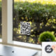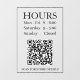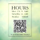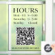 Señal de Horas Abiertas: Generar código QR para la puerta o ventana de entrada de la tienda en texto negro sobre fondo transparente con mensaje de código QR.