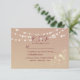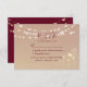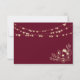Elegante tarjeta RSVP con un fondo suave de gradiente dorado, luces de cuerda brillantes y un guión elegante de color burdeos. Esta carta, acentuada por los gustos florales de encaje y personalizable de oro subió, es perfecta para coordinar con temas de casamiento rústico o romántico.