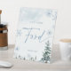 Señal de comida, ducha de bebé en el maravilloso invierno azul, y seña de ducha de puentes con pinos y copos de nieve.