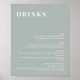 Esta señal de menú de bebidas de boda imprimible presenta un diseño minimalista moderno con tonos verdes salvia terrosos. Utilice esta plantilla para cambiar las fuentes, colores de fuente y color de fondo para que coincida con el estilo de su evento