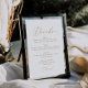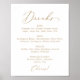 Esta señal de menú de bebidas de boda con caligrafía dorada delicada es perfecta para una boda moderna. El diseño minimalista romántico presenta una tipografía amarilla dorada champagne elegante y encantadora sobre un fondo blanco con un aspecto limpio y simple.