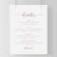 Esta señal de menú de bebidas de boda con caligrafía en rosa oro es perfecta para una boda rústica. El diseño simple y elegante presenta tipografía de guión clásica y elegante en rosa oro y blanco.