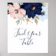 Esta señal de mesa floral náutica moderna es perfecta para una boda de crucero o de playa o una despedida de soltera. El diseño caprichoso presenta flores de acuarela rosa y azul marino con acentos de estrellas de mar doradas, lo que le da un ambiente playero. Esta señal se puede utilizar para una boda o cualquier evento o fiesta.