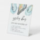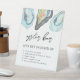 Señal de mesa para barra de ostras en boda costera