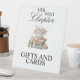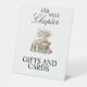 Elegante señal de mesa para fiesta de despedida de soltera con tema de libro floral 'Su próximo capítulo'