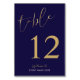 Termine de decorar su evento privado o empresarial con esta elegante señal de número de mesa en azul marino y dorado. Utilice esta tarjeta de números de mesa con efecto de lámina dorada para la función de su empresa, recaudación de fondos o recepción de boda, ¡este diseño simple se adapta a cualquier ocasión! Puede editar el número y el texto del nombre del evento para crear señales de cartel de asientos personalizados para su evento.