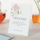 Esta elegante señal de BAR ABIERTO blanca presenta una encantadora ilustración floral de acuarela de rosa sonrosada y un conjunto de fuentes contemporáneas. Este artículo forma parte de una suite de colección de bodas más grande con artículos coincidentes.