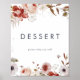 Esta señal de postre floral simple es perfecta para un evento o fiesta simple. El diseño boho caprichoso presenta flores rosadas, borgoña y marsala rústicas con un tono sombrío y romántico.