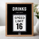 Moderno y audaz tema de fiesta de cumpleaños con un diseño de señal de límite de velocidad en blanco y negro. Perfecto para un cumpleaños número 16 o cualquier edad importante. Totalmente personalizable con los detalles de su evento y edad. Una opción elegante y contemporánea para celebraciones de adolescentes con un ambiente fresco y sofisticado. Por favor revise la colección coincidente para ELEMENTOS COORDINADOS. Obras de arte originales de PUPSIKU STUDIO. 100% producto único.