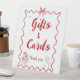 Haga inolvidable su ocasión especial con nuestro elegante Rótulo de Regalos y Tarjetas, diseñado para guiar a sus invitados y darle un toque encantador a su decoración de eventos. Perfecto para bodas, cumpleaños, duchas para bebés, graduaciones y más, este letrero asegura que sus huéspedes sepan exactamente dónde dejar sus regalos y sus tarjetas de corazón.