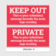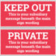 Dos señales de advertencia. Cambie la redacción para mostrar su propio mensaje en cada uno de ellos. Tamaño medio. 6 pulgadas de ancho.