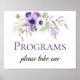 Señal de programas de boda con flores de acuarela púrpura, lavanda y blanca. Las fuentes son una mezcla de caligrafía manuscrita y moderna. Si desea este diseño en otras señales de boda, por favor envíeme un correo electrónico a shutterbug600@yahoo.com.