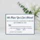 Elegante tarjeta de respuesta RSVP de boda con fondo azul marino. Personalice la información de RSVP de la recepción de bodas utilizando las plantillas más sencillas. El color de fuente, el estilo de fuente y el tamaño de fuente son personalizables. Clásica y moda, es la tarjeta de respuesta perfecta para bodas RSVP.