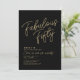 Invitación de cumpleaños número 50 personalizada "Fabuloso Cincuenta" negra y dorada con tipografía moderna y elegante. Personalízala fácilmente con nombre, edad y detalles de la fiesta.