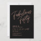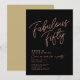 Sencilla invitación de cumpleaños número 50 personalizada de negro y dorado rosa "Fabuloso Cincuenta" con tipografía moderna y elegante. Personalízala fácilmente con nombre, edad y detalles de la fiesta.