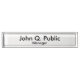 Un sencillo plato sencillo y sencillo con un blanco clásico con un delgado borde negro alrededor. El borde o marco se puede personalizar en color editando el color de fondo de la placa de nombre del escritorio. También se pueden personalizar el tipo de letra, el color y el tamaño.