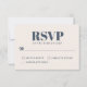Con un sentido de simplicidad minimalista moderna, este diseño de tarjeta de respuesta de boda simple y elegante se presenta en la opción de color popular: azul marino y beige ecru claro. La parte delantera de la tarjeta tiene un fondo beige ecru con texto azul marino y la parte trasera tiene un fondo azul marino con texto beige ecru. La tipografía negrita de moda deletrea RSVP. Personalice la fecha de respuesta requerida con su fecha requerida.