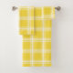 Este juego de toallas de baño presenta un sencillo patrón de yeso en blanco y amarillo limón.