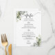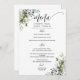 Este menú de eventos boda presenta un toque elegante con un guión moderno y hermoso de caligrafía con texto regular acompañado de un esquema de hojas de follaje de eucalipto acuarela. Vístelo con tu propia imagen en la parte de atrás y guau a tu invitado. Se puede personalizar el nombre, la fecha y la ubicación de las parejas. Sólo se puede cambiar el color de las elegantes formas caligráficas de "menú", "entrante", "entrante" y "postre". Puede personalizar el menú de todas formas que desee.