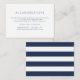 Desliza estas modas, tarjetas pequeñas en tu boda o invitaciones para eventos para que los huéspedes sepan de los arreglos de hoteles o códigos de grupo. Las tarjetas cuentan con letras modernas de color azul marino sobre un fondo blanco y dan la vuelta a las rayas marinas y blancas.