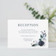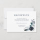 Una tarjeta de recepción floral boho de color azul marino, donde puedes proporcionar detalles de las actividades después de la boda.